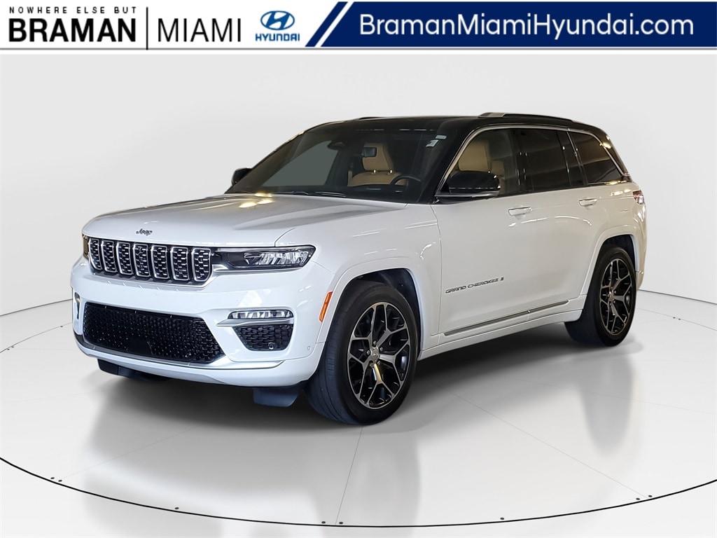 Braman Miami is Proud to offer you this Exceptional 2022 Jeep Grand Cherokee, Appointed with the Summit Trim and is finished in Bright White Clearcoat over Tupelo/Black Leather inside And it is ready for your consideration today! Recent Arrival! Clean CarFax, One Owner, Balance of Factory Warranty, 19 Speakers High Performance Audio, 2nd-Row Manual Window Shades, 950 Watt Amplifier, Active Noise Control System, ADV Protech Group IV, Deluxe Headliner, Front Passenger Interactive Display, Heads-Up Display, Luxury Tech Group V, Navigation System, Night Vision w/Pedestrian-Animal Detection, Palermo Leather Door Trim, Palermo Leather Seats, Power Liftgate, Power moonroof, Quick Order Package 22U Summit Reserve, Rearview Autodim Digital Display Mirror, Summit Reserve, Summit Reserve Badge, Ventilated Rear Seats, Wheels: 21" x 9" Machined Face/Painted Aluminum, Wireless Charging Pad. 2022 Jeep Grand Cherokee Summit 3.6L V6 24V VVT 8-Speed Automatic 4WD